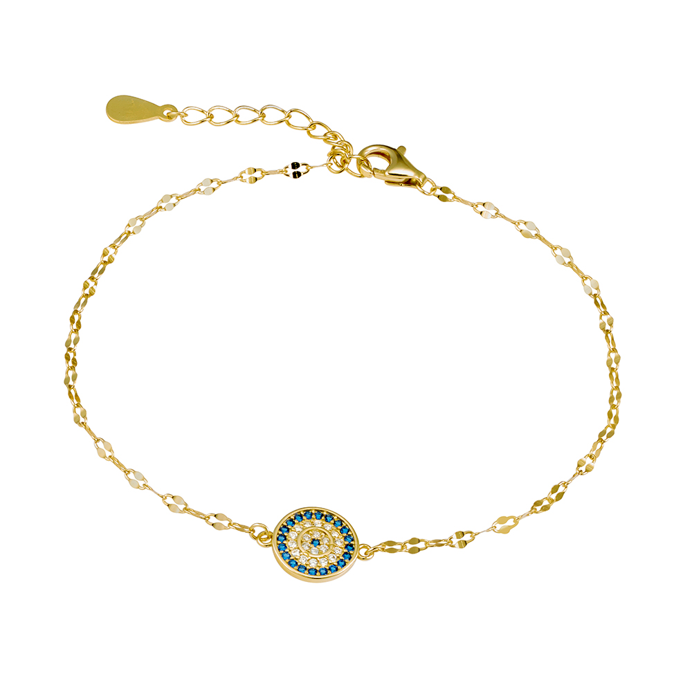 Sterling silver chain bracelet with micro pave eye pendant. 17 + 3CM. 25 Sterling Silver + e-coat (anti-tarnish technology). 14k Gold Plated