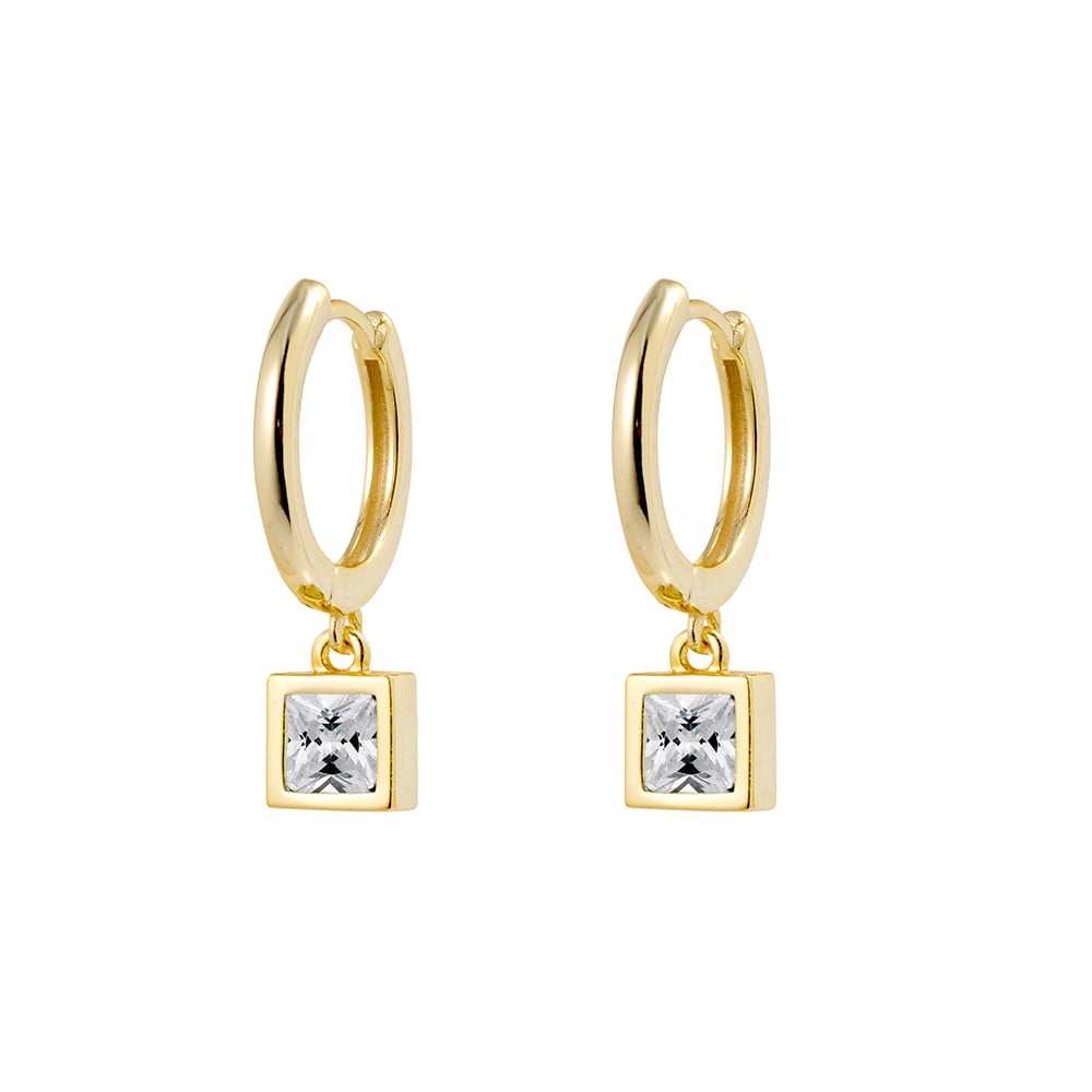 Sterling silver gold plated huggie earrings with white CZ drop. 22 x 5 CM