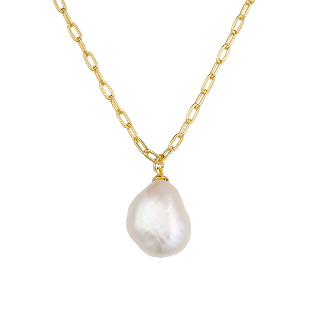 Sterling silver petite paperclip link chain with freshwater pearl pendant – Gold Plated CHAIN: 42 + 3CM PENDANT: 14 X 6MM